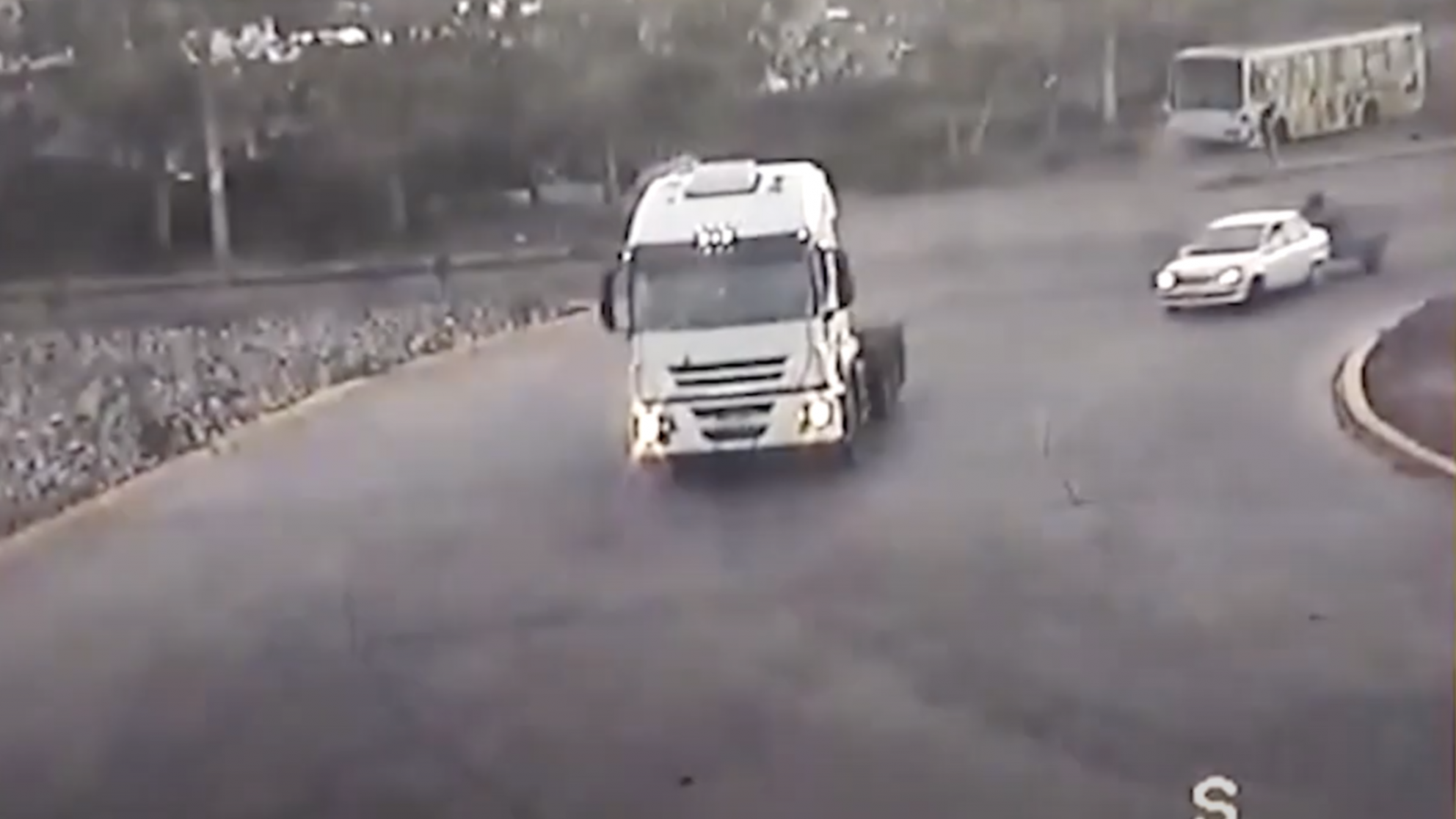 Se trata de un camionero brasileño, que conducía con 4,3 gramos de alcohol en sangre. Sus maniobras quedaron registradas por las cámaras de seguridad del municipio.