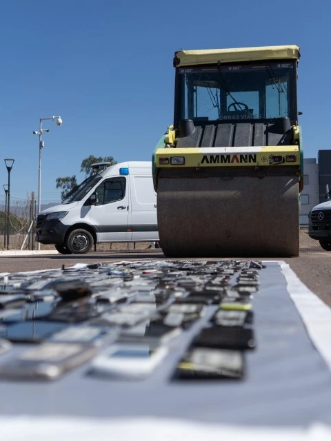 El Gobierno provincial inició la destrucción de 5.000 teléfonos celulares incautados en las cárceles mendocinas. El operativo se desarrolló en la playa de secuestros del Servicio Penitenciario y contó con la colaboración de la Municipalidad de Godoy Cruz, que aportó una aplanadora para destruir los dispositivos y garantizó el manejo responsable de residuos a través del programa de gestión de Residuos de Aparatos Eléctricos y Electrónicos (RAEE).